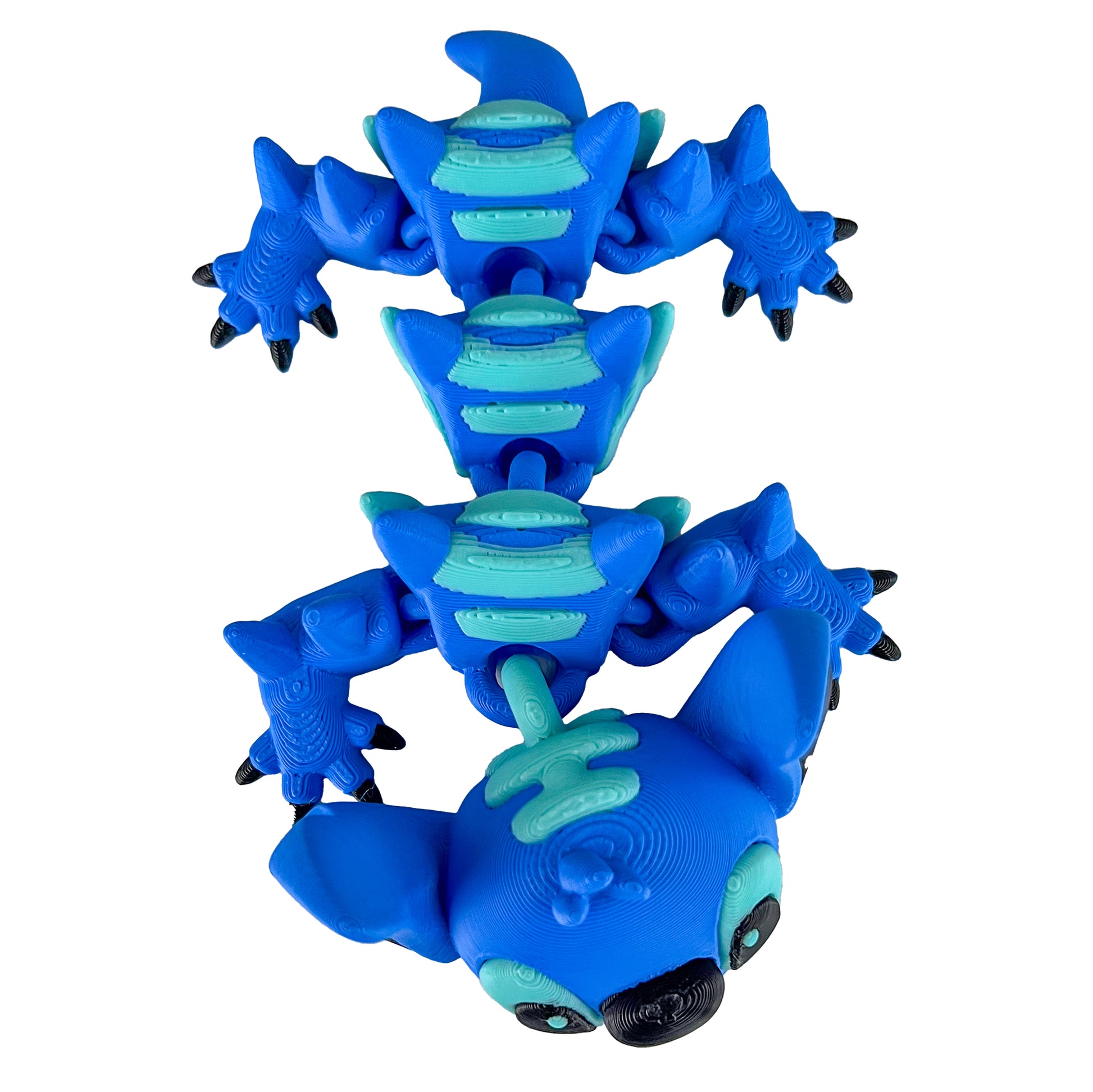 The Alien is a fully articulated 3D-printed creature designed with a playful, otherworldly personality. Featuring oversized expressive eyes, large ears, and a flexible segmented body, this alien can be posed, coiled, or displayed in fun, dynamic positions.
