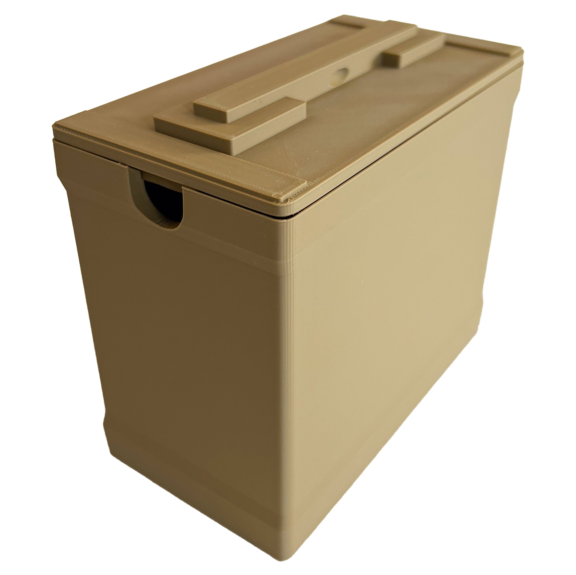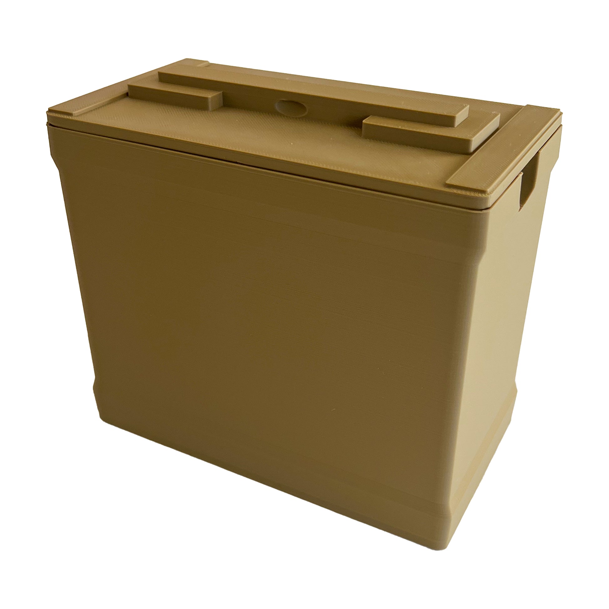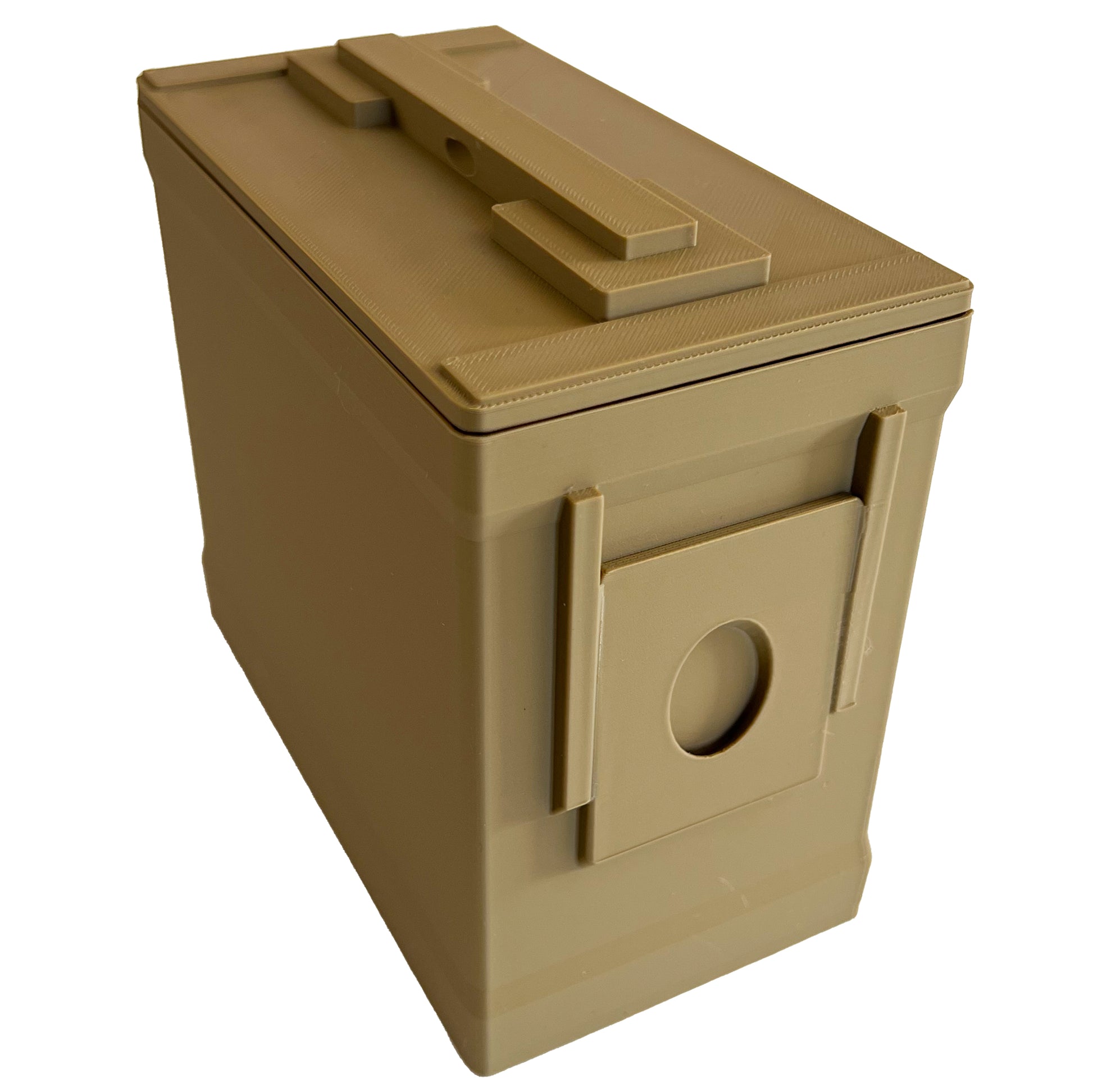 The lid opens smoothly to reveal a spacious interior, making it ideal for holding small tools, desk accessories, fidget toys, dice, hardware, or collectibles. Whether used as functional storage or display décor, the Ammo Can delivers durability and style in a compact form.